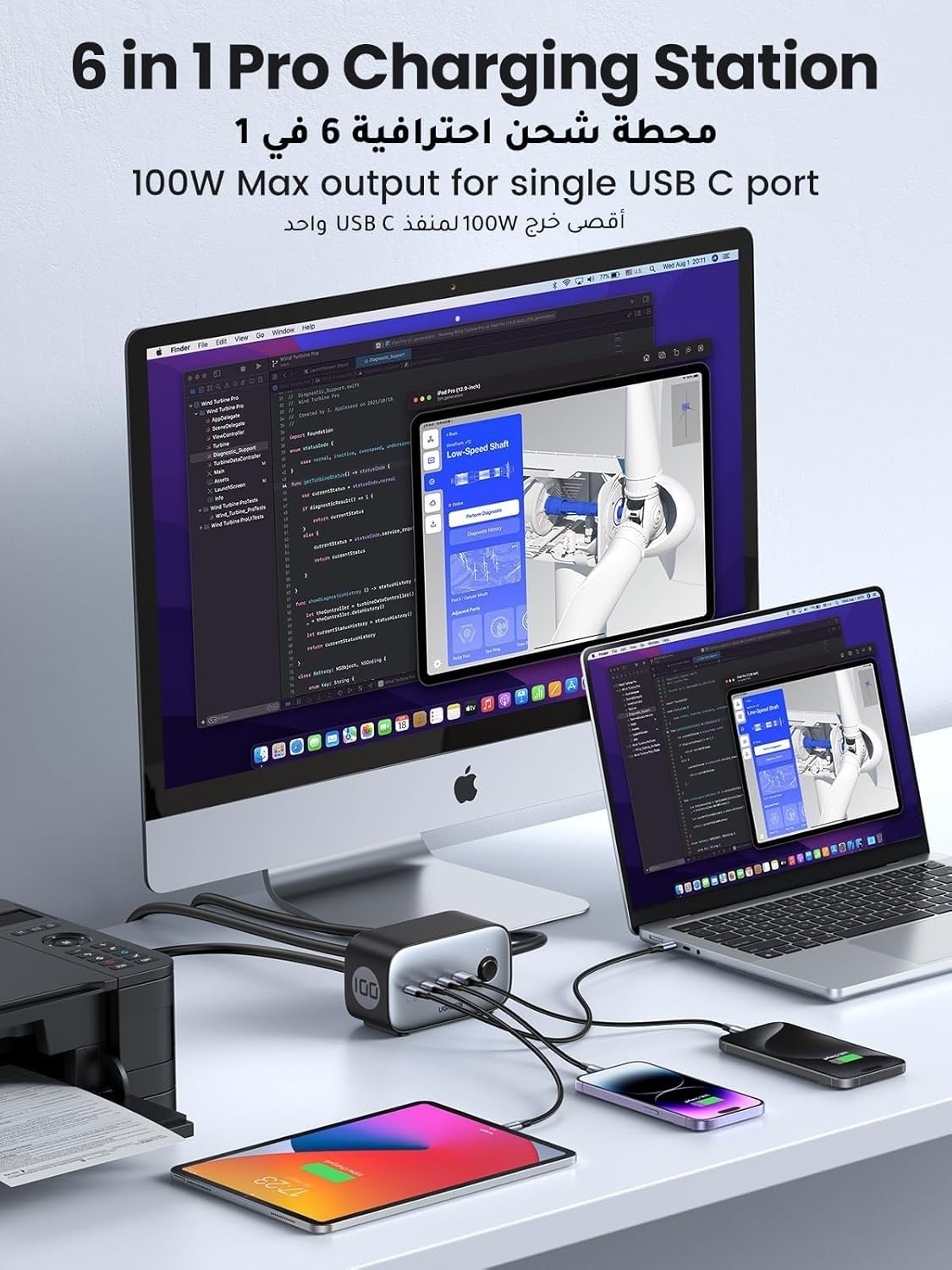 UGREENاگر به دنبال یک راهحل جمعوجور و قدرتمند برای شارژ همه دستگاهها در میز کار یا خانه هستید، شارژر چندپورت یوگرین DigiNest Pro انتخاب مناسبی است. این ایستگاه شارژ 6 در 1 با تمرکز روی شارژ سریع و حفاظت از دستگاهها طراحی شده است تا نیازهای مدرن از گوشی و تبلت تا لپتاپ را پوشش دهد. کابل 1.8 متری و طراحی کمجا باعث میشود که آن را بهراحتی کنار میز، تخت یا کنار مبلمان قرار دهید.